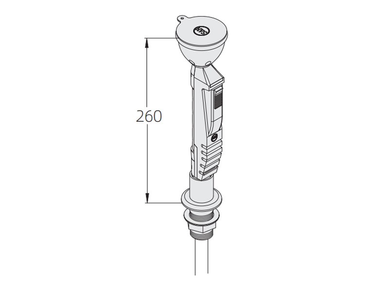 SAN-7304 · 主体:PP材质 · 阀体:止逆阀门可自动关闭 · 喷头:尼龙 · 防尘盖:PP材质,使用时可自动被水冲开 · 进水管:软性PVC管外覆尼龙纺织网