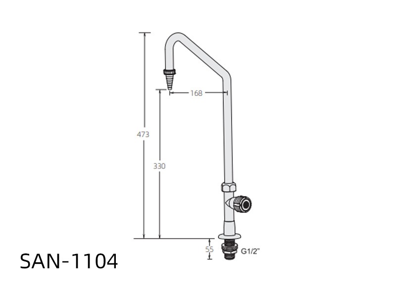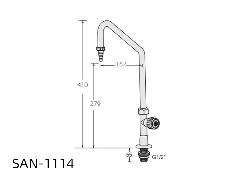 SAN-1104/1114 · 主体:优质铜材 · 涂层:高亮度环氧树脂涂层,耐腐蚀,防紫外线辐射 · 阀体:陶瓷阀芯 · 水嘴:可拆卸,材质可选铜质或 PP · 旋钮把手:高强度PP,耐腐蚀,人体工学设计,手感舒适